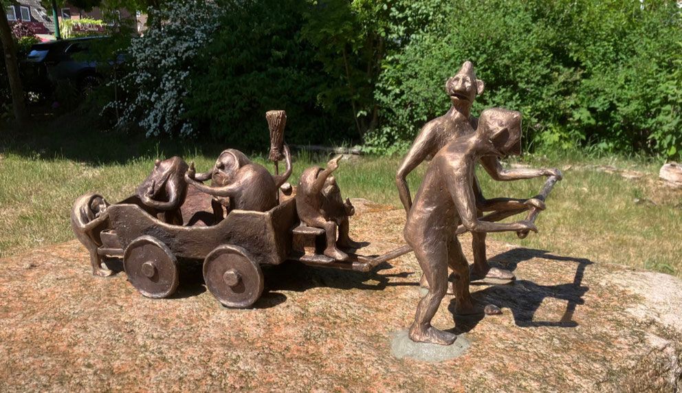 Die Bronzeinstallation befindet sich auf einer Grünfläche an der Ecke Bahnhofstraße/ Mühlenweg im Ort Sandkrug. Dort stehen auch zwei Bänke zum Verweilen zur Verfügung. Ein kleiner Tipp: hier hat man ein ideales Plätzchen zum Eisschlecken. Die Eisdiele ist ganz in der Nähe …